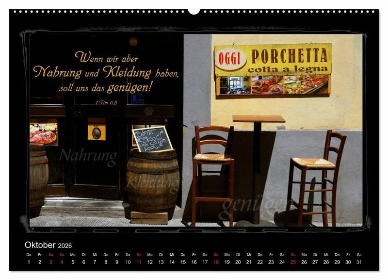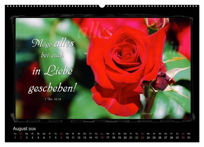 Dieser Kalender begleitet Sie durch das ganze Jahr, mit behutsam ausgesuchten Bibelversen, die mit geschmackvollen und teils künstlerischen Fotografien abgestimmt sind. Wenn Sie die Bibelverse aufmerksam beherzigen, kann das Ihr Leben positiv verändern. Der Kalender lädt den Betrachter ein, für eine Weile innezuhalten.