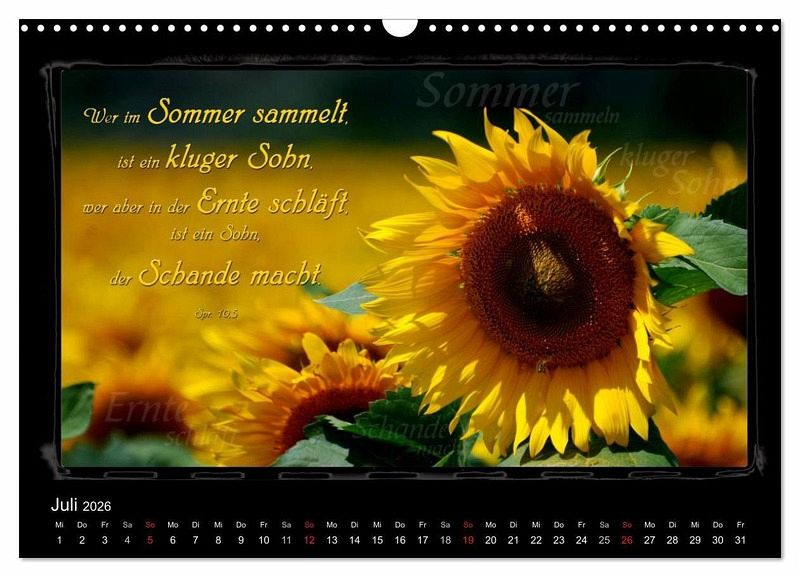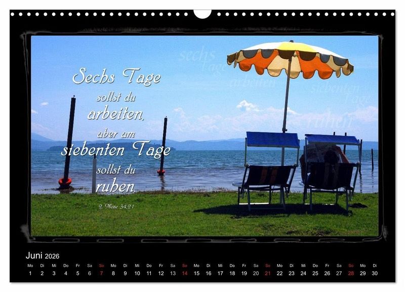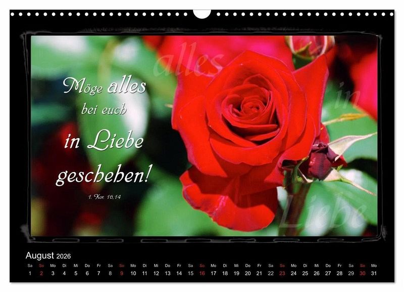 Dieser Kalender begleitet Sie durch das ganze Jahr, mit behutsam ausgesuchten Bibelversen, die mit geschmackvollen und teils künstlerischen Fotografien abgestimmt sind. Wenn Sie die Bibelverse aufmerksam beherzigen, kann das Ihr Leben positiv verändern. Der Kalender lädt den Betrachter ein, für eine Weile innezuhalten.