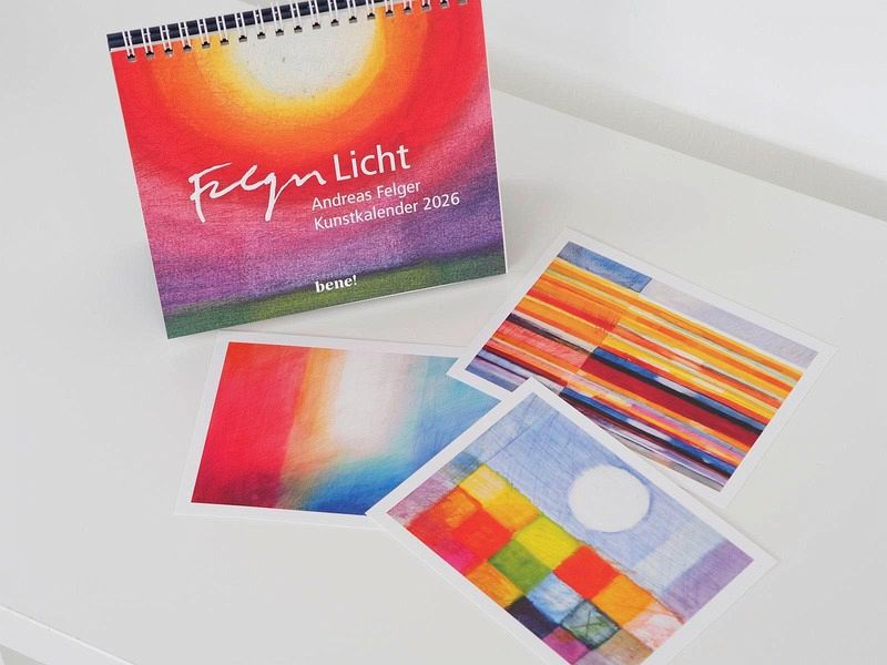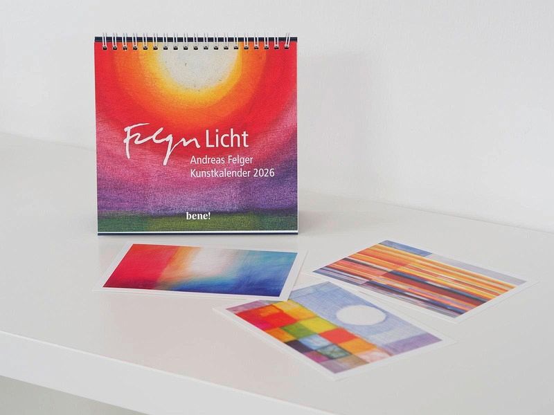 Die Auseinandersetzung mit Licht nimmt im Werk von Andreas Felger von je her eine zentrale Bedeutung ein. Licht ist es, was der Welt, wie wir sie sehen seine Farben verleiht, was Landschaften zum Vibrieren bringt und seinen Ausdruck auch in spiritueller Symbolik findet. Meisterhaft versteht Andreas Felger Licht besonders in seinem abstrakten Werk leuchtend und kontrastreich zum Ausdruck zu bringen. Seit über 40 Jahren erfreuen sich die Kalender des Künstlers großer Beliebtheit.