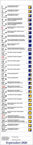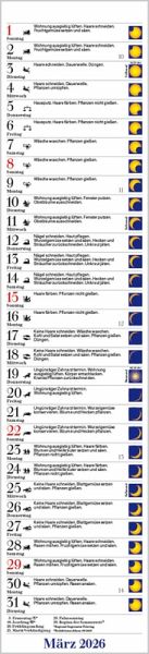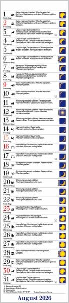 Praktische Tagesplanung in Harmonie mit den Zyklen des Mondes im schmalen Langformat.