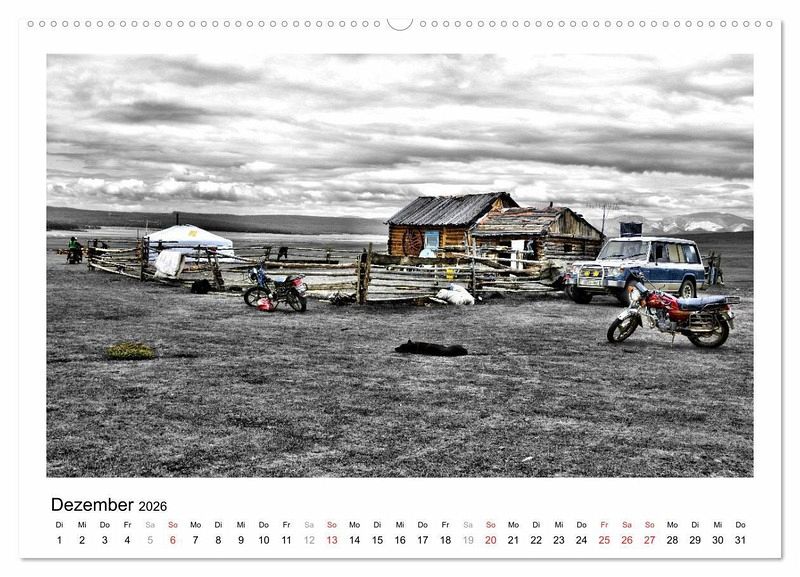 Dieser Kalender bietet beeindruckende Fotografien von verschiedenen Landstrichen der Nordmongolei.