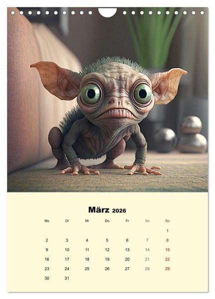 Ein witziger Monsterkalender, der für Staunen und lachen sorgt. Die kleinen Kreaturen sind zwar hässlich, aber irgendwie auch niedlich und wenn man sich vorstellt, dass sie plötzlich überall auftauchen könnten, ist es auch ein wenig gruselig. Diese Bilder wurden mit KI erstellt und es macht wirklich Spaß, sich diese Aliens anzusehen.