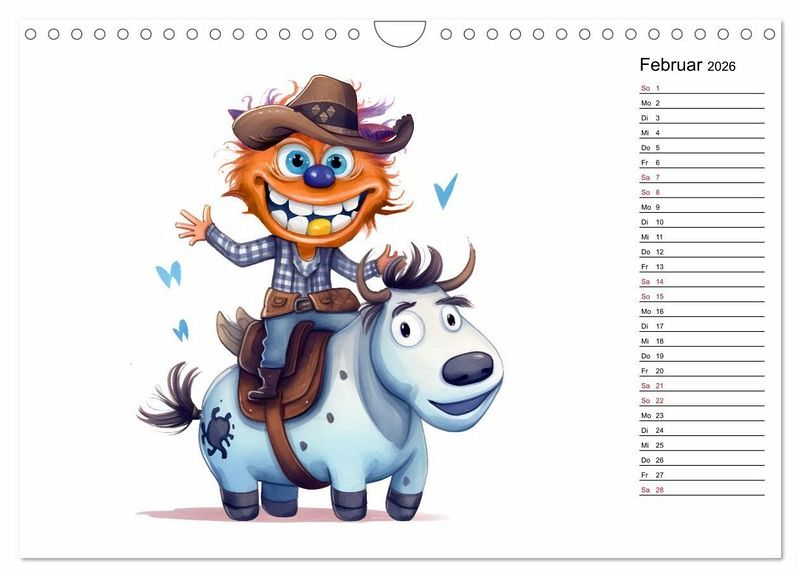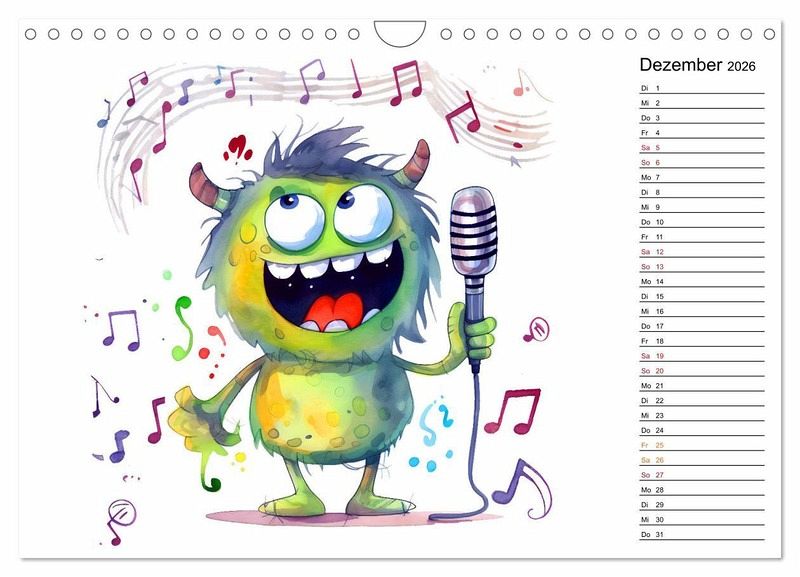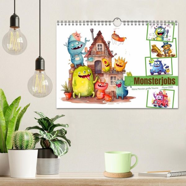 Entdecken Sie mit unserem Monster-Kinderkalender die aufregende Welt der Traumjobs! Jeden Monat üben die kleinen Monster neue Berufe aus, wie zum Beispiel Goldsucher, Feuerwehrmann oder Rennfahrer und vieles mehr. Der Kalender verfügt auch über eine praktische Planerfunktion, mit dem ihre Kinder alle seine Termine im Blick behält. Die KI-generierten Monster erstrahlen in lebendigen Farben.