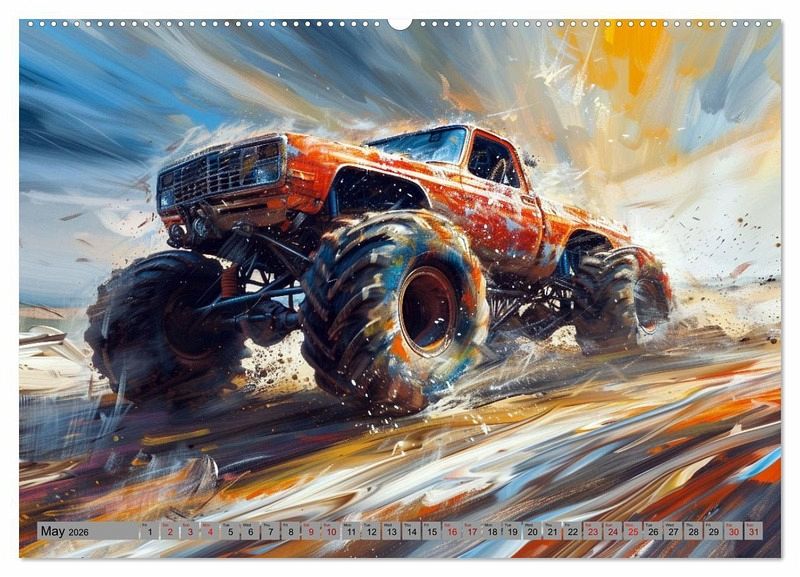 Rev up your excitement with the Monstertruck Madness: Powered by AI calendar. Experience the adrenaline rush of 12 jaw-dropping images, each showcasing the monstrous power and thrilling stunts of these titans of the track. With the magic of AI technology, every picture bursts to life, capturing the raw energy and excitement of monster truck madness. Get ready for a year of heart-pounding action and awe-inspiring feats, all in the palm of your hand.