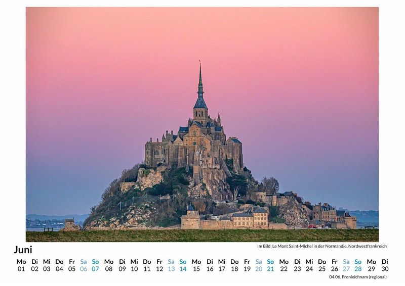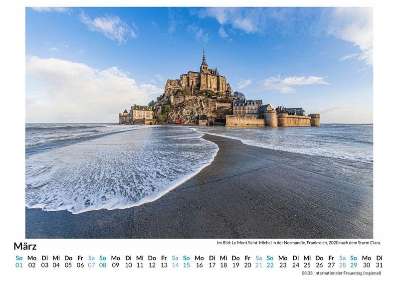 Entdecken Sie die Magie von Mont Saint-Michel mit unserem exklusiven Wandkalender! Lassen Sie sich Monat für Monat von 12 atemberaubenden Motiven dieses weltberühmten Wahrzeichens in Frankreich verzaubern. Jedes Bild wurde sorgfältig ausgewählt und auf hochwertigem, lichtbeständigem Bilderdruckpapier gedruckt, um die Schönheit dieses einzigartigen Ortes perfekt zur Geltung zu bringen. Gedruckt in Deutschland auf FSC-zertifiziertem Papier, vereint dieser Kalender Nachhaltigkeit und höchste Qualität. Holen Sie sich ein Stück französische Geschichte und Naturwunder in Ihr Zuhause - ideal als Geschenk oder für die eigene Wand! Jetzt bestellen und jeden Monat aufs Neue staunen! Hochwertig Erleben Sie ein Jahr voller Eleganz mit unserem Premium-Fotokalender. Jedes der 12 Motive ist auf hochwertigem, lichtbeständigem Bilderdruckpapier gedruckt, um die Lebendigkeit jedes Bildes zu bewahren. Die robuste Spiralbindung gewährleistet Langlebigkeit und einfache Handhabung. Nachhaltig Unser Engagement für die Umwelt spiegelt sich in jedem Exemplar wider. Durch die Produktion auf Abruf reduzieren wir signifikant unseren Abfall. Wir verwenden ausschließlich umweltfreundliches, FSC-zertifiziertes Papier. Stolz gefertigt in Deutschland, achten wir bei unserer Logistik auf Klimaschutz, um unseren ökologischen Fußabdruck zu minimieren. Das ideale Geschenk Dieser Kalender ist das perfekte Präsent für jeden Anlass - ob Weihnachten, Geburtstage oder einfach als liebevolle Aufmerksamkeit zwischendurch. Geeignet für Freunde, Familie, Kinder und Erwachsene gleichermaßen, bereichert er jedes Zuhause mit seiner Vielfalt und Schönheit, unabhängig vom Alter der Beschenkten.