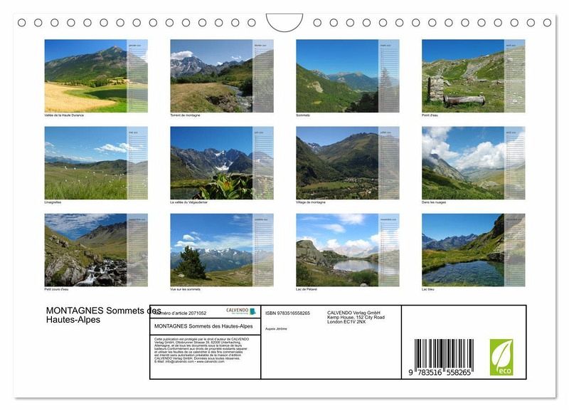 Retrouvez dans ce calendrier la beauté de nos belles montagnes Françaises. Ces photographies ont été prises dans différentes vallées des Hautes-Alpes.
