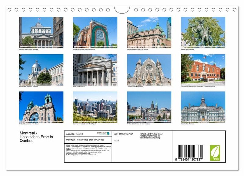 Der Kalender nimmt Sie mit in das bezaubernde Montreal, der angeblich europäischsten Metropole in Canada. Kommen Sie mit auf eine visuelle Reise durch Montreals reiches architektonisches Erbe.