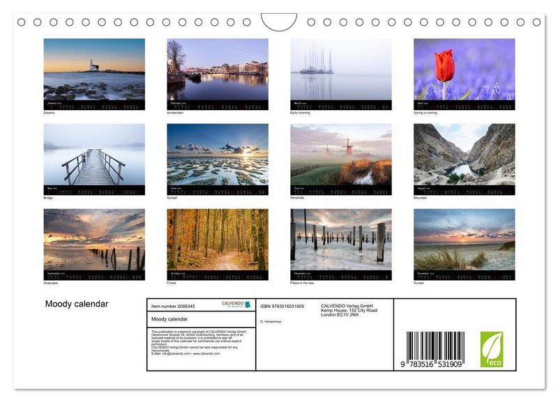 QUALITY - High-quality photo calendar with 12 beautiful images on light-resistant paper, robust spiral binding with hanger.SUSTAINABLE - Significant waste reduction due to print-on-demand production, environmentally friendly FSC-certified paper, produced in the UK, climate-conscious logistical processes.PERFECT GIFT - calendars for friends and family, for children, all ages and all occasions, from Christmas to birthdays and everything in between.LOTS OF CHOICE - Wall calendars in different sizes (DIN A4 and DIN A3), for any topic and personal taste, featuring photography, painting and illustrations.Beautiful moody calendar, author: Oskar Verkamman