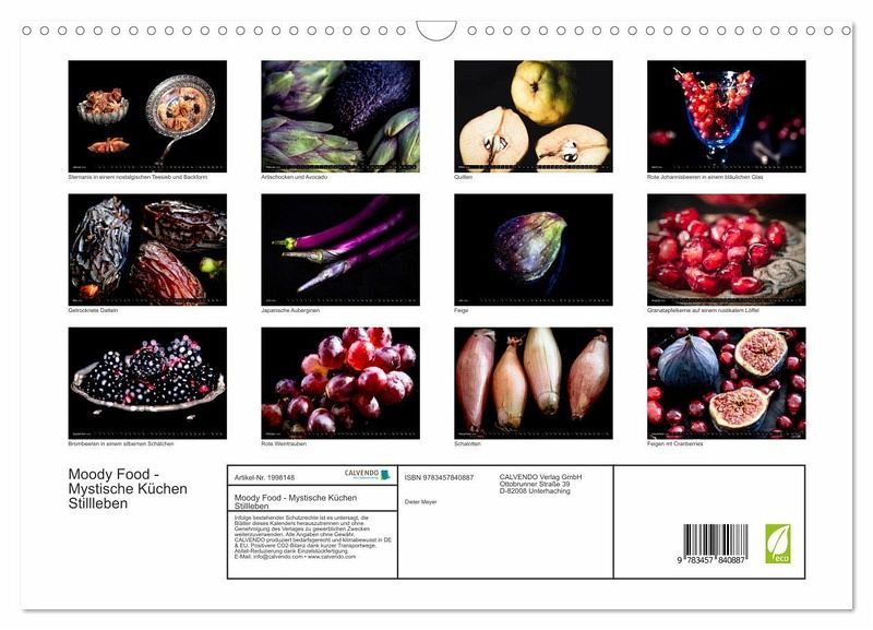 QUALITÄT - Hochwertiger Fotokalender mit 12 wunderschönen Motiven auf lichtbeständigem Bilderdruckpapier, robuste Spiralbindung mit Aufhängebügel.NACHHALTIG - deutliche Abfallreduzierung durch bedarfsgerechte Einzelstückfertigung, umweltfreundliches FSC-zertifiziertes Papier, Produktion in Deutschland, klimabewusste Logistik.PERFEKTES GESCHENK - Kalender für Freunde und Familie, für Kinder und Erwachsene, jung und alt, zu Weihnachten, Geburtstag oder zwischendurch.VIELFALT - Bildkalender in verschiedenen Formaten, z.B. DIN A5, DIN A4, DIN A3 sowie DIN A2. Ob Naturmotiv, Gemälde oder Fotos, ideal für ein persönliches Wohlfühlambiente.Stimmungsvolle Food-Fotos im Mystic Light Stil. von Autor(in): Dieter Meyer