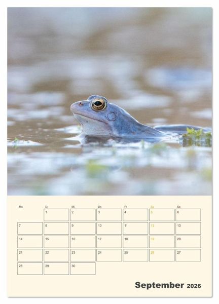 QUALITÄT - Hochwertiger Fotokalender mit 12 wunderschönen Motiven auf lichtbeständigem Bilderdruckpapier, robuste Spiralbindung mit Aufhängebügel.NACHHALTIG - deutliche Abfallreduzierung durch bedarfsgerechte Einzelstückfertigung, umweltfreundliches FSC-zertifiziertes Papier, Produktion in Deutschland, klimabewusste Logistik.PERFEKTES GESCHENK - Kalender für Freunde und Familie, für Kinder und Erwachsene, jung und alt, zu Weihnachten, Geburtstag oder zwischendurch.VIELFALT - Bildkalender in verschiedenen Formaten, z.B. DIN A5, DIN A4, DIN A3 sowie DIN A2. Ob Naturmotiv, Gemälde oder Fotos, ideal für ein persönliches Wohlfühlambiente.Ein faszinierendes Jahr mit Deutschlands geheimnisvollsten Amphibien, lebendig, charmant und exklusiv fotografiert. von Autor(in): Tanja Riedel