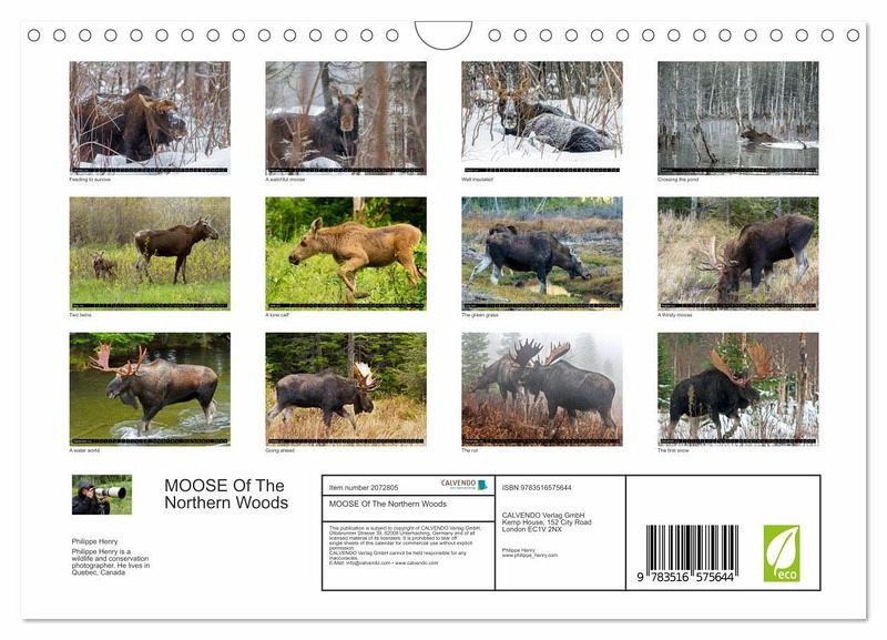 QUALITY - High-quality photo calendar with 12 beautiful images on light-resistant paper, robust spiral binding with hanger.SUSTAINABLE - Significant waste reduction due to print-on-demand production, environmentally friendly FSC-certified paper, produced in the UK, climate-conscious logistical processes.PERFECT GIFT - calendars for friends and family, for children, all ages and all occasions, from Christmas to birthdays and everything in between.LOTS OF CHOICE - Wall calendars in different sizes (DIN A4 and DIN A3), for any topic and personal taste, featuring photography, painting and illustrations.Let's follow the moose of Quebec northernwoods. Philippe Henry presents 13 photos of this silent giant., author: Philippe Henry