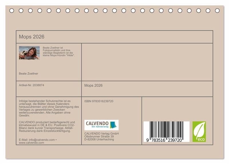 QUALITÄT - Hochwertiger Fotokalender mit 12 wunderschönen Motiven auf lichtbeständigem Bilderdruckpapier, robuste Spiralbindung.NACHHALTIG - deutliche Abfallreduzierung durch bedarfsgerechte Einzelstückfertigung, umweltfreundliches FSC-zertifiziertes Papier, Produktion in Deutschland, klimabewusste Logistik.PERFEKTES GESCHENK - Kalender für Freunde und Familie, für Kinder und Erwachsene, jung und alt, zu Weihnachten, Geburtstag oder zwischendurch.VIELFALT - Bildkalender in verschiedenen Formaten, z.B. DIN A5, DIN A4, DIN A3 sowie DIN A2. Ob Naturmotiv, Gemälde oder Fotos, ideal für ein persönliches Wohlfühlambiente.Die Mops-Hündin "Hilde" ist die ständige, vierbeinige Begleitung von Fotojournalistin Beate Zoellner von Autor(in): Beate Zoellner