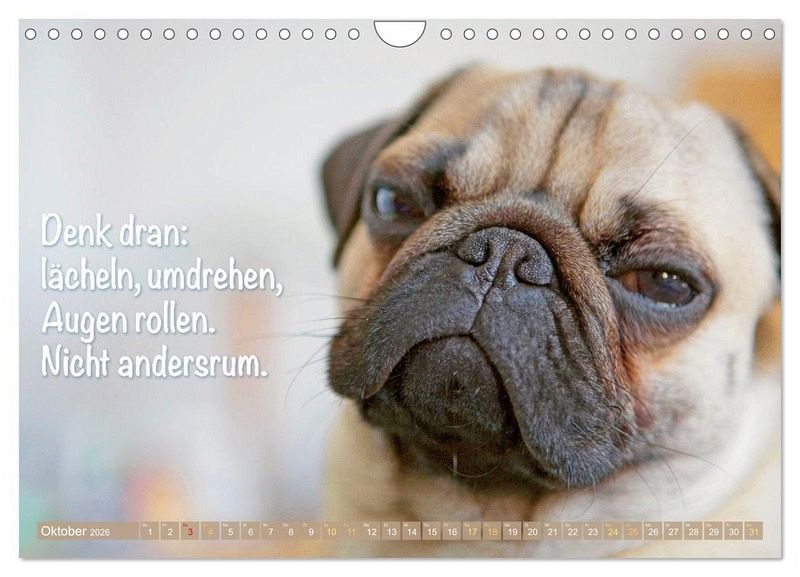 Er schnarcht, er sabbert, er begrüßt freudig jeden Einbrecher - und doch ist der Mops der charmante Herzensbrecher unter den Hunden. Humorvoll kommentiert und geistreich auf den Punkt gebracht erleben Sie hier das Leben des ganz besonderen besten Freundes des Menschen. Dieser Sprüche Kalender kombiniert die frechsten Möpse mit lustigen Weisheiten nicht nur aus einem Hundeleben. Ein Geschenk für gute Freunde und Kollegen und natürlich für sich selbst.