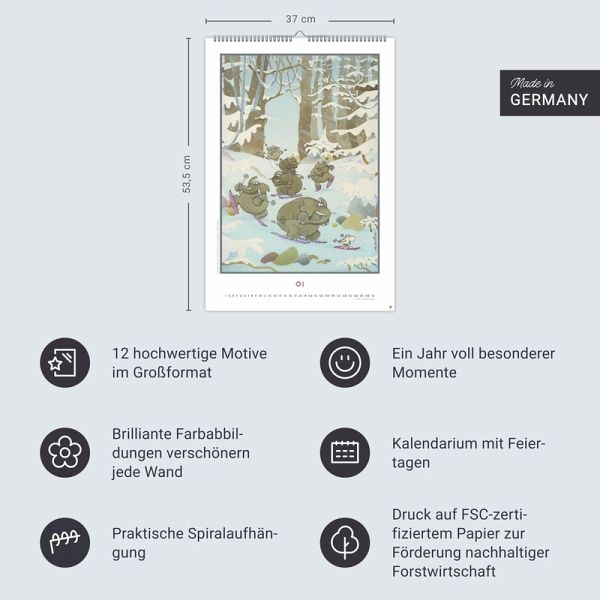 - Der richtige Riecher für Humor: Posterkalender 2026 im Format 37 x 53,5 cm mit den liebenswürdigen Figuren von Guillermo Mordillo- Auch ohne Worte verständlich: witziger Kalender im Großformat mit den charmanten Gestalten mit der großen Nase des berühmten Cartoonisten- Macht jeden Monat zu etwas Besonderem: Wandkalender mit 12 Postern mit den schönsten Motiven von den weltbekannten Knollennasenmännchen in Aktion- Ein Must-have für alle Freund:innen des feinen Humors: dekorativer Kalender 2026 im Hochformat und mit Spiralbindung- Für alle, die es bunt mögen: Posterkalender von Heye im Athesia Kalenderverlag