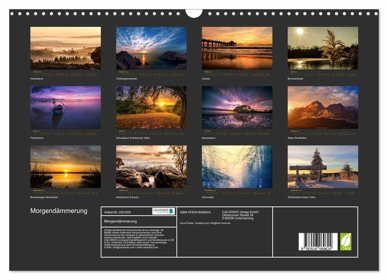 QUALITÄT - Hochwertiger Fotokalender mit 12 wunderschönen Motiven auf lichtbeständigem Bilderdruckpapier, robuste Spiralbindung mit Aufhängebügel.NACHHALTIG - deutliche Abfallreduzierung durch bedarfsgerechte Einzelstückfertigung, umweltfreundliches FSC-zertifiziertes Papier, Produktion in Deutschland, klimabewusste Logistik.PERFEKTES GESCHENK - Kalender für Freunde und Familie, für Kinder und Erwachsene, jung und alt, zu Weihnachten, Geburtstag oder zwischendurch.VIELFALT - Bildkalender in verschiedenen Formaten, z.B. DIN A5, DIN A4, DIN A3 sowie DIN A2. Ob Naturmotiv, Gemälde oder Fotos, ideal für ein persönliches Wohlfühlambiente.Hypnotisierende Bilder in fantastischer Morgenstimmung von Autor(in): Horst Eisele