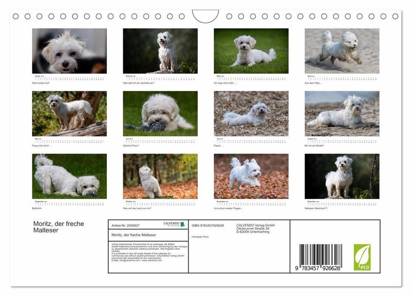 QUALITÄT - Hochwertiger Fotokalender mit 12 wunderschönen Motiven auf lichtbeständigem Bilderdruckpapier, robuste Spiralbindung mit Aufhängebügel.NACHHALTIG - deutliche Abfallreduzierung durch bedarfsgerechte Einzelstückfertigung, umweltfreundliches FSC-zertifiziertes Papier, Produktion in Deutschland, klimabewusste Logistik.PERFEKTES GESCHENK - Kalender für Freunde und Familie, für Kinder und Erwachsene, jung und alt, zu Weihnachten, Geburtstag oder zwischendurch.VIELFALT - Bildkalender in verschiedenen Formaten, z.B. DIN A5, DIN A4, DIN A3 sowie DIN A2. Ob Naturmotiv, Gemälde oder Fotos, ideal für ein persönliches Wohlfühlambiente.Der Malteser Moritz von Autor(in): Hanspeter Roos
