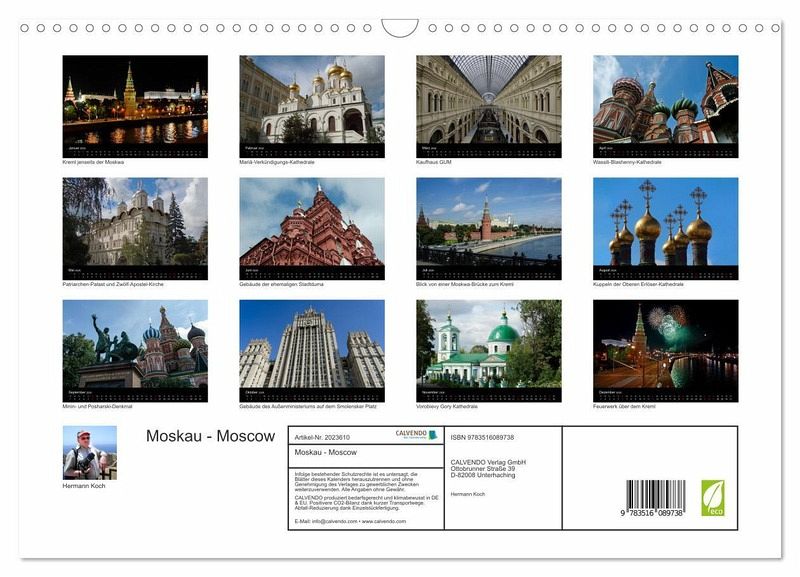QUALITÄT - Hochwertiger Fotokalender mit 12 wunderschönen Motiven auf lichtbeständigem Bilderdruckpapier, robuste Spiralbindung mit Aufhängebügel.NACHHALTIG - deutliche Abfallreduzierung durch bedarfsgerechte Einzelstückfertigung, umweltfreundliches FSC-zertifiziertes Papier, Produktion in Deutschland, klimabewusste Logistik.PERFEKTES GESCHENK - Kalender für Freunde und Familie, für Kinder und Erwachsene, jung und alt, zu Weihnachten, Geburtstag oder zwischendurch.VIELFALT - Bildkalender in verschiedenen Formaten, z.B. DIN A5, DIN A4, DIN A3 sowie DIN A2. Ob Naturmotiv, Gemälde oder Fotos, ideal für ein persönliches Wohlfühlambiente.Moskau - Ein Stadtporträt von Autor(in): Hermann Koch