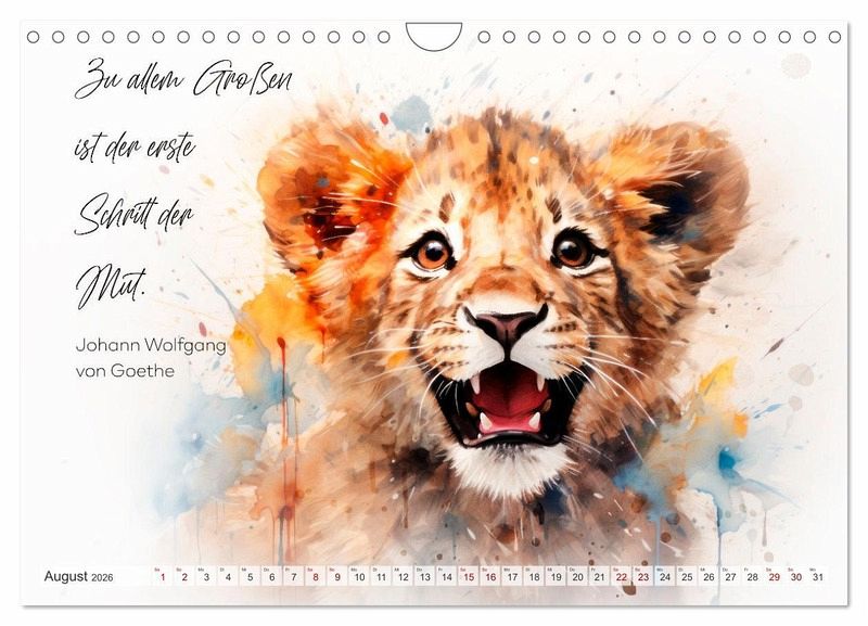 Bezaubernde malerische Motive mit wildlebenden Tieren in einer minimalistischen Szenerie und inspirierenden Zitaten erwarten Sie in diesem hinreißenden KI-unterstützten Kalender. Mehr Lebensfreude durch wunderbare Weisheiten! Lassen Sie sich von schlauen Äffchen, liebenswerten Alpakas, knuddeligen Faultieren, fleißigen Eichhörnchen und vielen weiteren drolligen Tierkindern das Jahr über begleiten.