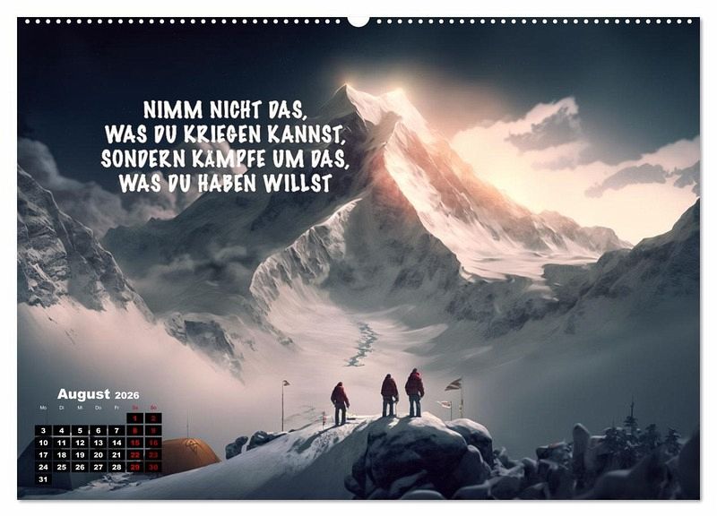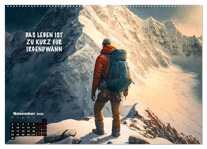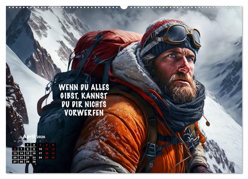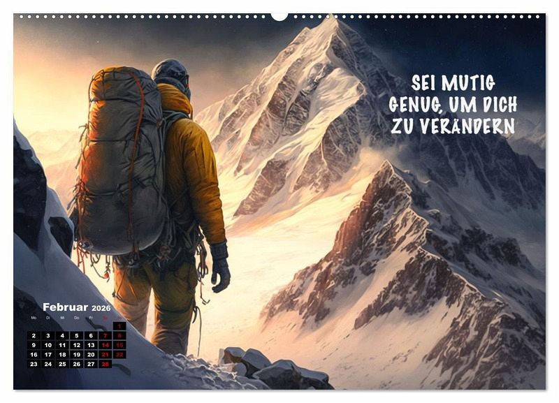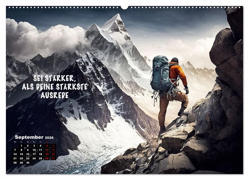 PREMIUM-LINIE - Brillanter Fotokalender mit 12 wunderschönen Motiven, Kunstdruck in Hochglanz in Museumsqualität.QUALITÄT - edle Materialien, stabile Rückwand mit 2 innovativen Einstecktaschen für eine optimale Präsentation an der Wand.NACHHALTIG - deutliche Abfallreduzierung durch bedarfsgerechte Einzelstückfertigung, umweltfreundliches FSC-zertifiziertes Papier, Produktion in Deutschland, klimabewusste Logistik.PERFEKTES GESCHENK - Kalender für Freunde und Familie, für Kinder und Erwachsene, jung und alt, zu Weihnachten, Geburtstag oder zwischendurch.Ein beeindruckender Motivationskalender nicht nur für Bergsteiger, mit wirklich tollen Motivationssprüchen von Autor(in): Dirk Meutzner