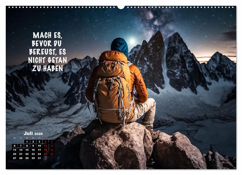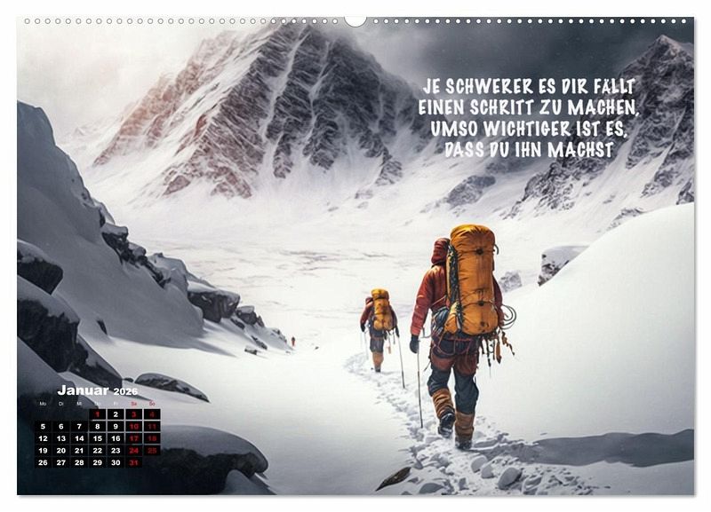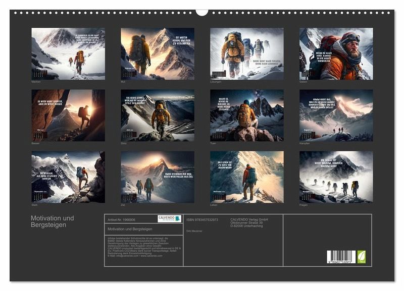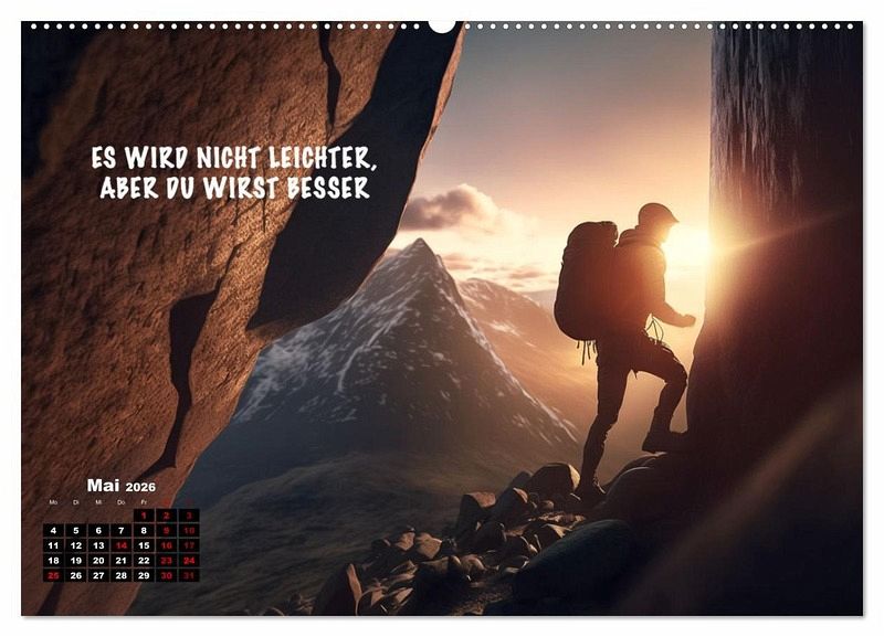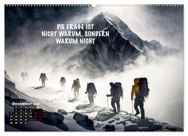 QUALITÄT - Hochwertiger Fotokalender mit 12 wunderschönen Motiven auf lichtbeständigem Bilderdruckpapier, robuste Spiralbindung mit Aufhängebügel.NACHHALTIG - deutliche Abfallreduzierung durch bedarfsgerechte Einzelstückfertigung, umweltfreundliches FSC-zertifiziertes Papier, Produktion in Deutschland, klimabewusste Logistik.PERFEKTES GESCHENK - Kalender für Freunde und Familie, für Kinder und Erwachsene, jung und alt, zu Weihnachten, Geburtstag oder zwischendurch.VIELFALT - Bildkalender in verschiedenen Formaten, z.B. DIN A5, DIN A4, DIN A3 sowie DIN A2. Ob Naturmotiv, Gemälde oder Fotos, ideal für ein persönliches Wohlfühlambiente.Ein beeindruckender Motivationskalender nicht nur für Bergsteiger, mit wirklich tollen Motivationssprüchen von Autor(in): Dirk Meutzner