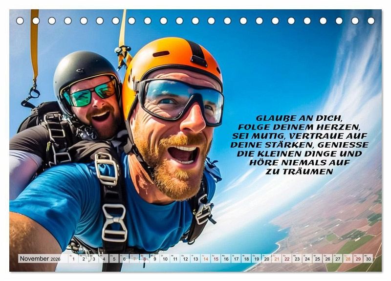 QUALITÄT - Hochwertiger Fotokalender mit 12 wunderschönen Motiven auf lichtbeständigem Bilderdruckpapier, robuste Spiralbindung.NACHHALTIG - deutliche Abfallreduzierung durch bedarfsgerechte Einzelstückfertigung, umweltfreundliches FSC-zertifiziertes Papier, Produktion in Deutschland, klimabewusste Logistik.PERFEKTES GESCHENK - Kalender für Freunde und Familie, für Kinder und Erwachsene, jung und alt, zu Weihnachten, Geburtstag oder zwischendurch.VIELFALT - Bildkalender in verschiedenen Formaten, z.B. DIN A5, DIN A4, DIN A3 sowie DIN A2. Ob Naturmotiv, Gemäldeoder Fotos, ideal für ein persönliches Wohlfühlambiente.Einzigartige Bildmotive gepaart mit wunderbaren Motivationssprüchen, nicht nur für Skydiver von Autor(in): Dirk Meutzner