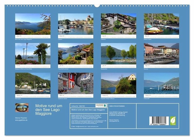 Die Region um den Lago Maggiore bietet viele Möglichkeiten der Freizeitgestaltung.Viele kleine Ortschaften laden zum flanieren ein.Im strahlend blauen Wasser schwimmen gehen ist eine andere Möglichkeit. Oder man geht mal wieder wandern in der wunderbaren Natur. In diesem Kalender finden Sie 13 ausgewählte Motive aus der Region um den Lago Maggiore.