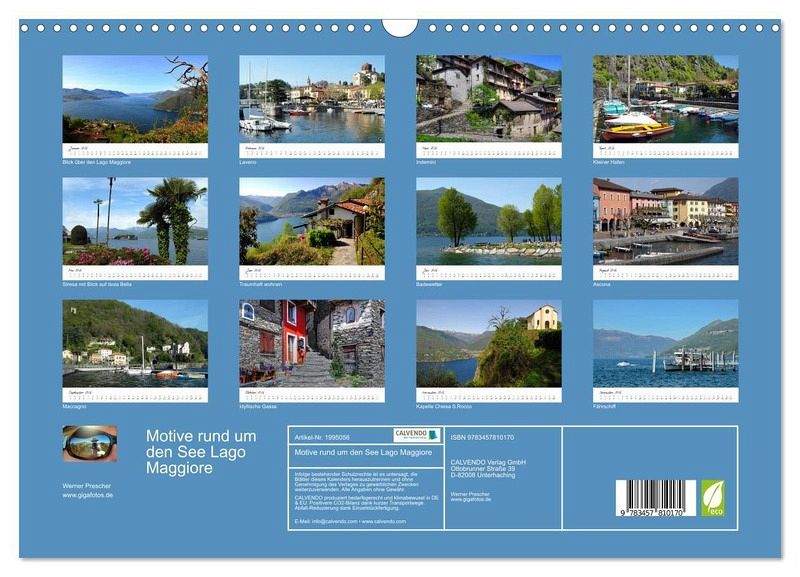 Die Region um den Lago Maggiore bietet viele Möglichkeiten der Freizeitgestaltung.Viele kleine Ortschaften laden zum flanieren ein.Im strahlend blauen Wasser schwimmen gehen ist eine andere Möglichkeit. Oder man geht mal wieder wandern in der wunderbaren Natur. In diesem Kalender finden Sie 13 ausgewählte Motive aus der Region um den Lago Maggiore.