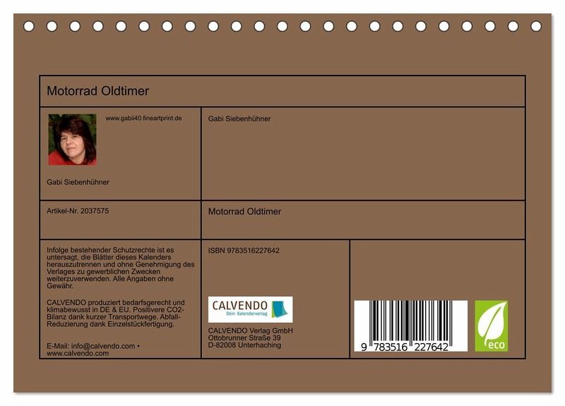 QUALITÄT - Hochwertiger Fotokalender mit 12 wunderschönen Motiven auf lichtbeständigem Bilderdruckpapier, robuste Spiralbindung.NACHHALTIG - deutliche Abfallreduzierung durch bedarfsgerechte Einzelstückfertigung, umweltfreundliches FSC-zertifiziertes Papier, Produktion in Deutschland, klimabewusste Logistik.PERFEKTES GESCHENK - Kalender für Freunde und Familie, für Kinder und Erwachsene, jung und alt, zu Weihnachten, Geburtstag oder zwischendurch.VIELFALT - Bildkalender in verschiedenen Formaten, z.B. DIN A5, DIN A4, DIN A3 sowie DIN A2. Ob Naturmotiv, Gemälde oder Fotos, ideal für ein persönliches Wohlfühlambiente.Motorrad - Oldtimer von Autor(in): Gabi Siebenhühner