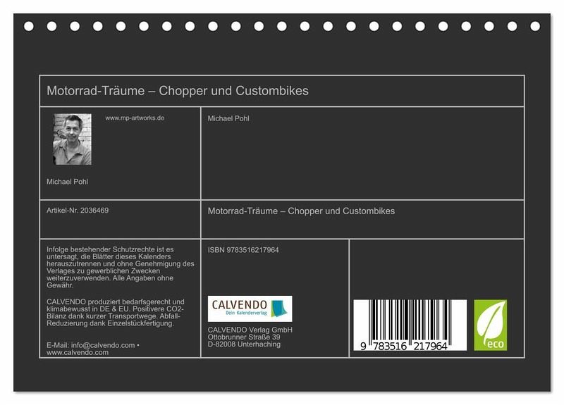 QUALITÄT - Hochwertiger Fotokalender mit 12 wunderschönen Motiven auf lichtbeständigem Bilderdruckpapier, robuste Spiralbindung.NACHHALTIG - deutliche Abfallreduzierung durch bedarfsgerechte Einzelstückfertigung, umweltfreundliches FSC-zertifiziertes Papier, Produktion in Deutschland, klimabewusste Logistik.PERFEKTES GESCHENK - Kalender für Freunde und Familie, für Kinder und Erwachsene, jung und alt, zu Weihnachten, Geburtstag oder zwischendurch.VIELFALT - Bildkalender in verschiedenen Formaten, z.B. DIN A5, DIN A4, DIN A3 sowie DIN A2. Ob Naturmotiv, Gemälde oder Fotos, ideal für ein persönliches Wohlfühlambiente.Harley-Davidson und außergewöhnliche Custombikes von Autor(in): Michael Pohl