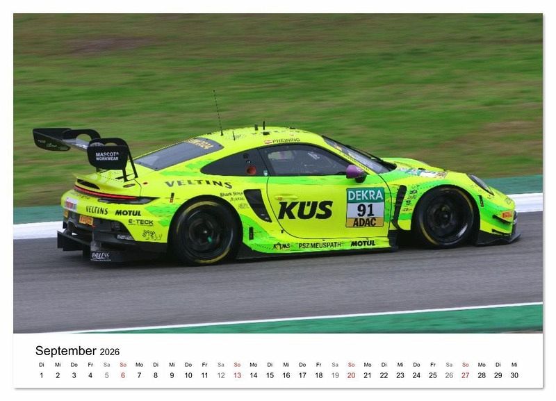 Porsche ist die Deutsche Sportwagen-Marke schlechthin und bietet als solche auch eine bunt gefächerte Palette an Fahrzeugen für den Motorsport. Dieser Kalender bietet einen Querschnitt über einige dieser Fahrzeuge. Er enthält Bilder diverser Porsche Rennfahrzeuge, gefahren bei den 24h Rennen auf dem Nürburgring, der VLN sowie dem Porsche Carrera Cup.