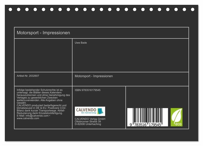 QUALITÄT - Hochwertiger Fotokalender mit 12 wunderschönen Motiven auf lichtbeständigem Bilderdruckpapier, robuste Spiralbindung.NACHHALTIG - deutliche Abfallreduzierung durch bedarfsgerechte Einzelstückfertigung, umweltfreundliches FSC-zertifiziertes Papier, Produktion in Deutschland, klimabewusste Logistik.PERFEKTES GESCHENK - Kalender für Freunde und Familie, für Kinder und Erwachsene, jung und alt, zu Weihnachten, Geburtstag oder zwischendurch.VIELFALT - Bildkalender in verschiedenen Formaten, z.B. DIN A5, DIN A4, DIN A3 sowie DIN A2. Ob Naturmotiv, Gemälde oder Fotos, ideal für ein persönliches Wohlfühlambiente.13 faszinierende Seiten aus der Welt des Motorsports in einem Kalender von Autor(in): uwela