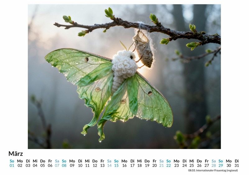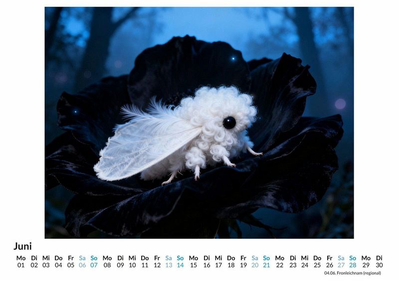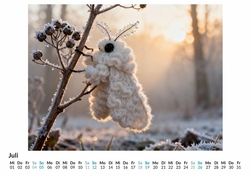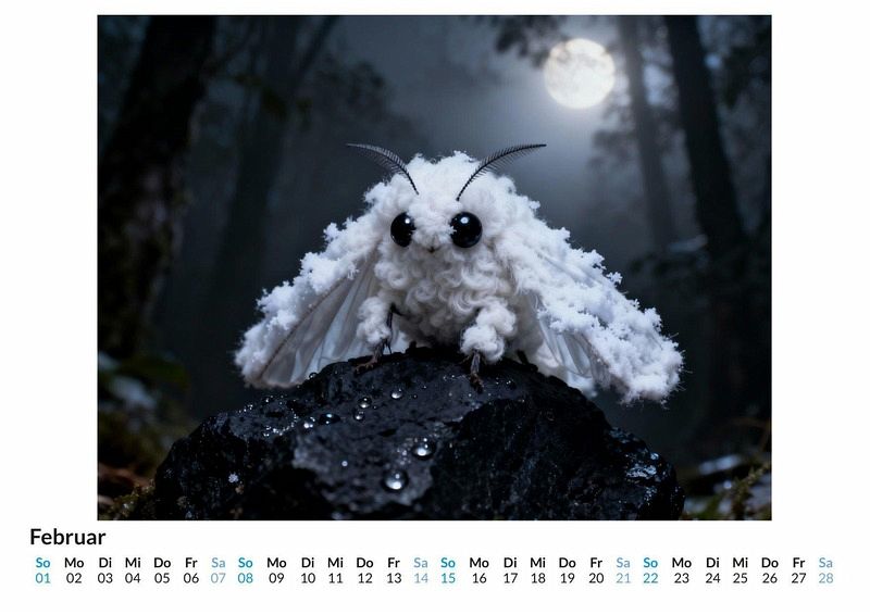 Versteckt in den Schatten der Nacht existieren Wesen, die wie aus einem düsteren Märchen entsprungen scheinen. Die Pudelmotte, mit ihrem dichten, weißen Pelz und den federartigen Fühlern, verkörpert die mystische Aura einer Gothic Fee. Der Kalender "Motte" fängt diese besondere Ästhetik in zwölf einzigartigen Motiven ein und begleitet durch ein Jahr voller dunkler Poesie. Dieser Kalender ist eine passende Wahl für: * Liebhaber der Gothic Kultur und dunkler Romantik. * Alle, die das Besondere in der Natur suchen und ungewöhnliche Insekten faszinierend finden. * Jene, die eine Wanddekoration abseits des Gewöhnlichen bevorzugen. Jeder Monat präsentiert eine andere Facette dieser flauschigen Nachtfalter. Die Motive zeigen die Pudelmotten in surrealen, nebligen Landschaften, auf alten Büchern oder umgeben von dornigen Ranken. Die Bildwelten wurden durch die Interpretation von textlichen Beschreibungen durch einen digitalen Schaffensprozess zum Leben erweckt. Das Ergebnis sind fotorealistische Darstellungen, die keine gemalten Kunstwerke sind. Die Kompositionen spielen mit Licht und Schatten und unterstreichen den geheimnisvollen Charakter der Tiere. Beim Kauf dieses Kalenders kann man Folgendes erwarten: * Zwölf Monatsblätter mit Motiven der Pudelmotte. * Ein praktisches Kalendarium für die Jahresplanung. * Ein Wandkalender, der das ganze Jahr über begleitet. Der Kalender "Motte" ist mehr als nur ein Zeitplaner; er ist ein Fenster in eine verborgene Welt voller düsterer Eleganz. Eine Entdeckungsreise in die Welt dieser besonderen Geschöpfe erwartet den Betrachter.