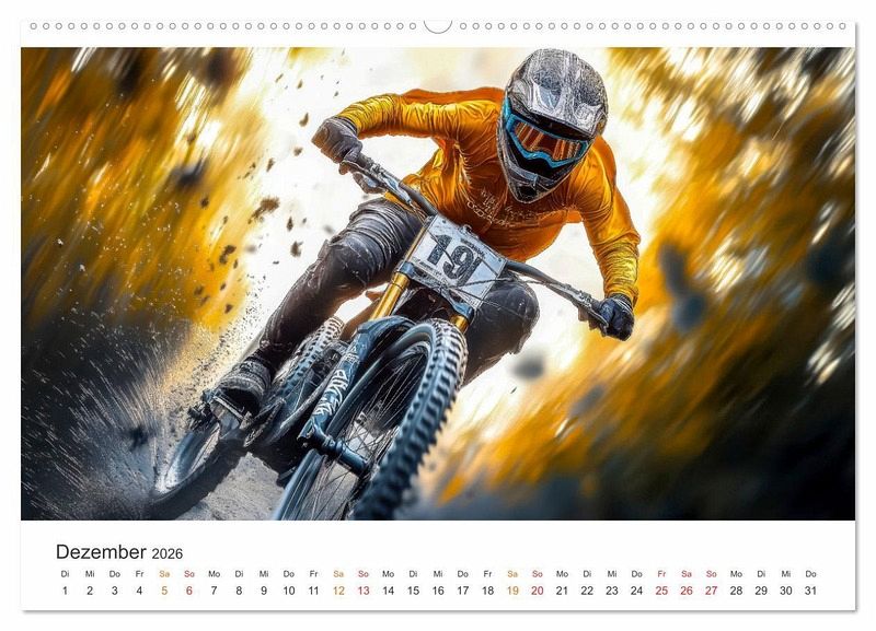 Spüren Sie den Herzschlag des Abenteuers, Monat für Monat. Fangen Sie die atemberaubenden Momente ein, in denen Leidenschaft auf Naturgewalt trifft. Waghalsige Trails, tosendes Gelände, tiefe Schluchten und felsige Bergpfade oder die Schönheit abgelegener Pfade und Landschaften aus einzigartigen Perspektiven - diese KI-Bilder erzählen Geschichten von Mut, Geschwindigkeit und unbändiger Freiheit. Ein perfekter Kalender für alle Sportfans und die, die Mountainbiking nicht nur als Sport, sondern als Lebensgefühl verstehen.