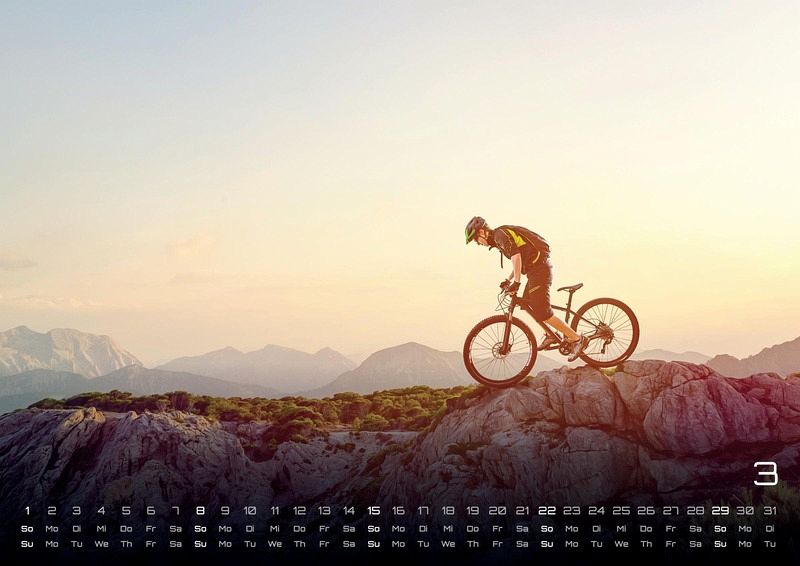 Bike-Freaks aufgepasst! In unserem MTB-Kalender 2026 erwarten euch 14 tolle Mountainbike Aufnahmen für das kommende Jahr. Ein Must Have für jeden Fahrrad-Fan oder als ideale Geschenkidee geeignet. Seid gespannt und sichert euch den Bike-Kalender im Format DIN A3 oder A2 (extragroß) für das Jahr 2026!