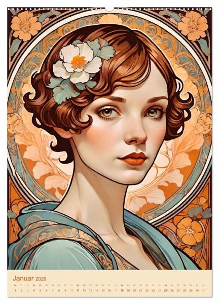 Die Kunst von Alfons Mucha (1860-1939) hatte einen großen Einfluss auf die Ästhetik des Jugendstils und prägte das Bild des Designs in der Belle Époque maßgeblich. Sein Werk bleibt bis unverwechselbar. Die Porträts dieses Kalenders im typischen Mucha-Stil hat Steffani Lehmann mit Unterstützung einer KI editiert,