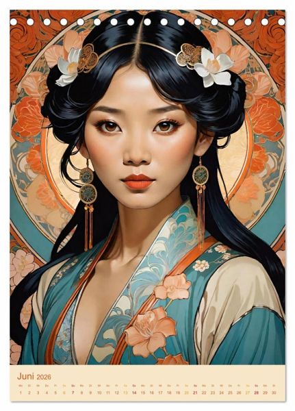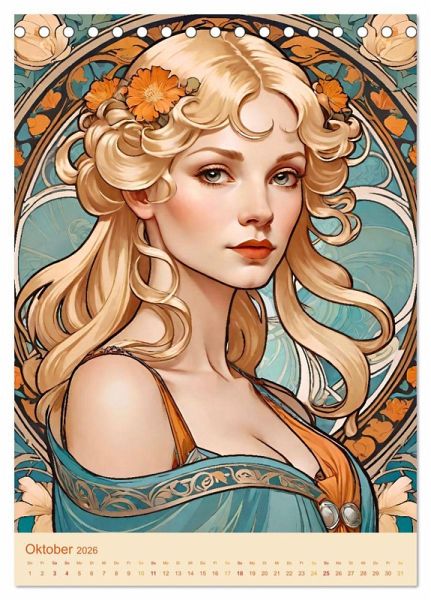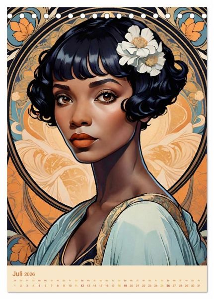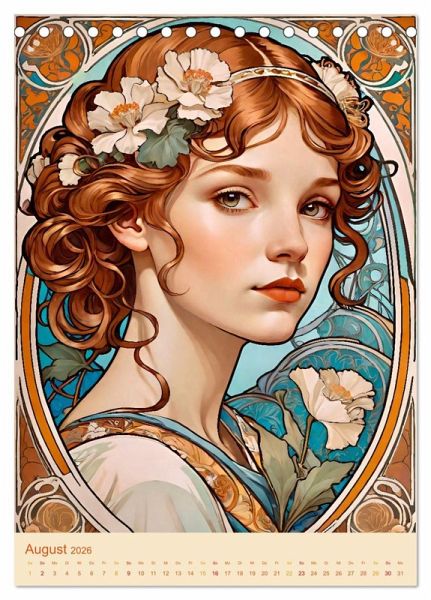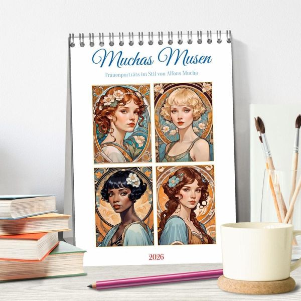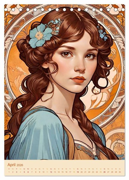 Die Kunst von Alfons Mucha (1860-1939) hatte einen großen Einfluss auf die Ästhetik des Jugendstils und prägte das Bild des Designs in der Belle Époque maßgeblich. Sein Werk bleibt bis unverwechselbar. Die Porträts dieses Kalenders im typischen Mucha-Stil hat Steffani Lehmann mit Unterstützung einer KI editiert,