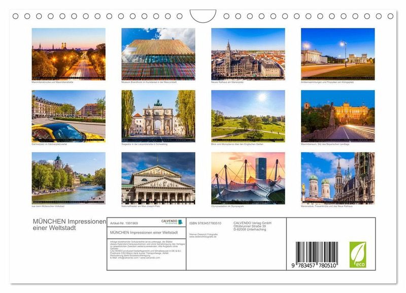 QUALITÄT - Hochwertiger Fotokalender mit 12 wunderschönen Motiven auf lichtbeständigem Bilderdruckpapier, robuste Spiralbindung mit Aufhängebügel.NACHHALTIG - deutliche Abfallreduzierung durch bedarfsgerechte Einzelstückfertigung, umweltfreundliches FSC-zertifiziertes Papier, Produktion in Deutschland, klimabewusste Logistik.PERFEKTES GESCHENK - Kalender für Freunde und Familie, für Kinder und Erwachsene, jung und alt, zu Weihnachten, Geburtstag oder zwischendurch.VIELFALT - Bildkalender in verschiedenen Formaten, z.B. DIN A5, DIN A4, DIN A3 sowie DIN A2. Ob Naturmotiv, Gemälde oder Fotos, ideal für ein persönliches Wohlfühlambiente.Faszinierende Aufnahmen der bayerischen Landeshauptstadt München von Autor(in): Werner Dieterich