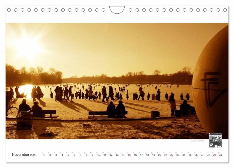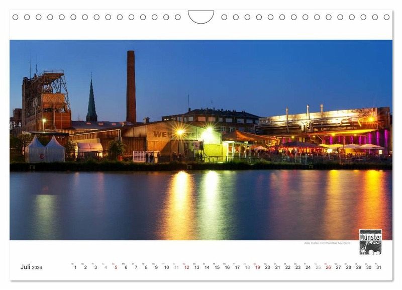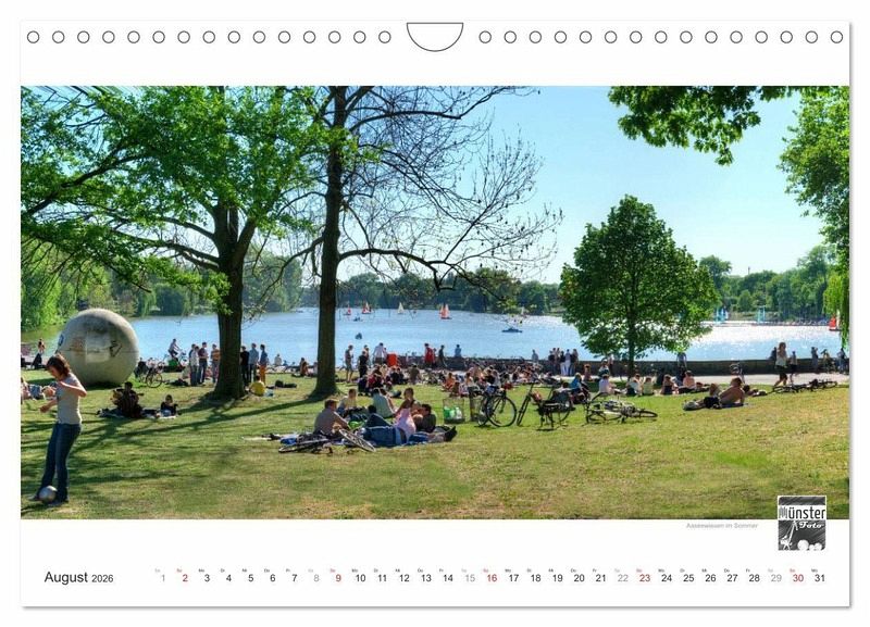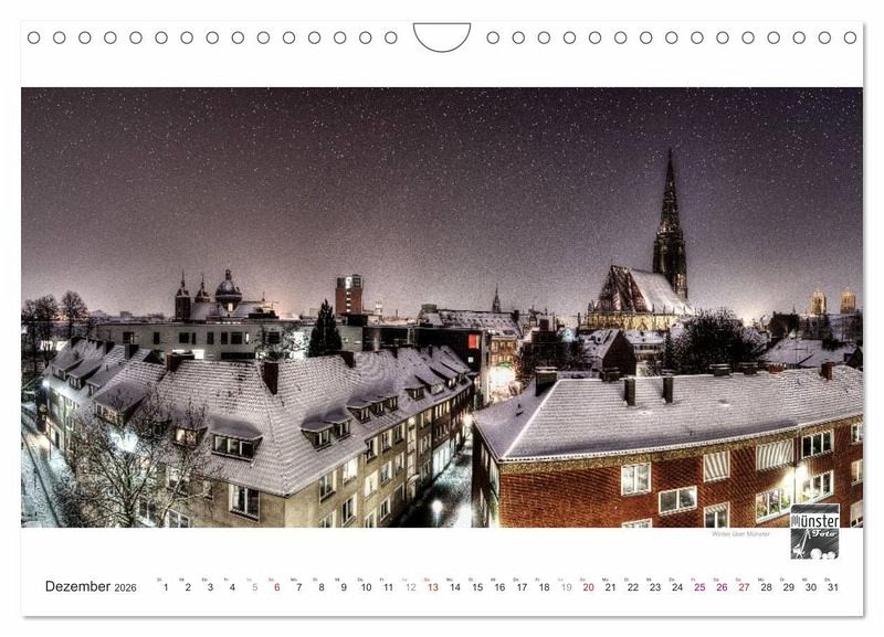 In diesem 14-seitigen Monatskalender werden auf 12 großformatigen Panorama-Motiven die schönsten Orte der Stadt im Herzen von Westfalen gezeigt. Die Fotografien von Chris Kubisch zeigen typische wie außergewöhnliche Ansichten von MÜNSTER - vom Umweltprogramm der Vereinten Nationen als "Lebenswerteste Stadt der Welt" ausgezeichnet und bekannt als Fahrradhauptstadt Deutschlands. Auf 12 farbenprächtigen Bildern werden die unterschiedlichen Facetten der Studenten- und Fahrradstadt präsentiert - vom Aasee über die Promenade zum Schloss.