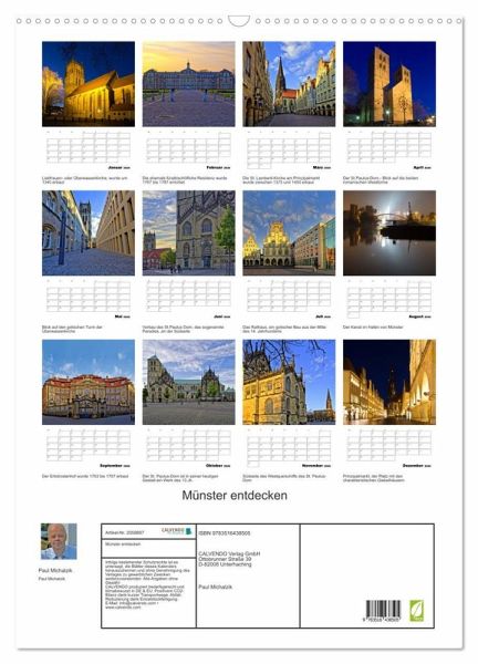 QUALITÄT - Hochwertiger Fotokalender mit 12 wunderschönen Motiven auf lichtbeständigem Bilderdruckpapier, robuste Spiralbindung mit Aufhängebügel.NACHHALTIG - deutliche Abfallreduzierung durch bedarfsgerechte Einzelstückfertigung, umweltfreundliches FSC-zertifiziertes Papier, Produktion in Deutschland, klimabewusste Logistik.PERFEKTES GESCHENK - Kalender für Freunde und Familie, für Kinder und Erwachsene, jung und alt, zu Weihnachten, Geburtstag oder zwischendurch.VIELFALT - Bildkalender in verschiedenen Formaten, z.B. DIN A5, DIN A4, DIN A3 sowie DIN A2. Ob Naturmotiv, Gemälde oder Fotos, ideal für ein persönliches Wohlfühlambiente.Fotografien der Stadt des Westfälischen Friedens mit ihren schönsten historischen Gebäuden von Autor(in): Paul Michalzik
