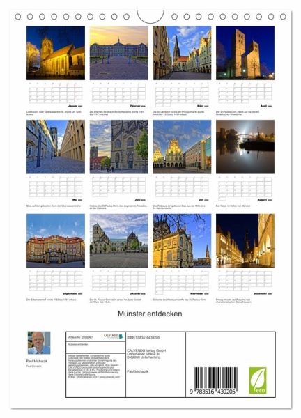 QUALITÄT - Hochwertiger Fotokalender mit 12 wunderschönen Motiven auf lichtbeständigem Bilderdruckpapier, robuste Spiralbindung mit Aufhängebügel.NACHHALTIG - deutliche Abfallreduzierung durch bedarfsgerechte Einzelstückfertigung, umweltfreundliches FSC-zertifiziertes Papier, Produktion in Deutschland, klimabewusste Logistik.PERFEKTES GESCHENK - Kalender für Freunde und Familie, für Kinder und Erwachsene, jung und alt, zu Weihnachten, Geburtstag oder zwischendurch.VIELFALT - Bildkalender in verschiedenen Formaten, z.B. DIN A5, DIN A4, DIN A3 sowie DIN A2. Ob Naturmotiv, Gemälde oder Fotos, ideal für ein persönliches Wohlfühlambiente.Fotografien der Stadt des Westfälischen Friedens mit ihren schönsten historischen Gebäuden von Autor(in): Paul Michalzik