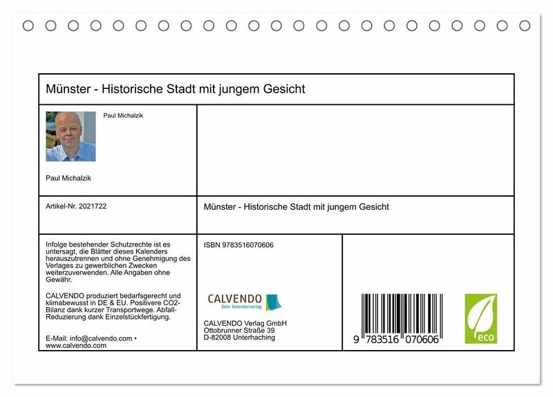 QUALITÄT - Hochwertiger Fotokalender mit 12 wunderschönen Motiven auf lichtbeständigem Bilderdruckpapier, robuste Spiralbindung.NACHHALTIG - deutliche Abfallreduzierung durch bedarfsgerechte Einzelstückfertigung, umweltfreundliches FSC-zertifiziertes Papier, Produktion in Deutschland, klimabewusste Logistik.PERFEKTES GESCHENK - Kalender für Freunde und Familie, für Kinder und Erwachsene, jung und alt, zu Weihnachten, Geburtstag oder zwischendurch.VIELFALT - Bildkalender in verschiedenen Formaten, z.B. DIN A5, DIN A4, DIN A3 sowie DIN A2. Ob Naturmotiv, Gemälde oder Fotos, ideal für ein persönliches Wohlfühlambiente.Münster, eine westfälische Metropole, eine sehenswerte Stadt von Autor(in): Paul Michalzik