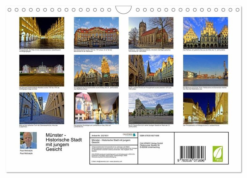 QUALITÄT - Hochwertiger Fotokalender mit 12 wunderschönen Motiven auf lichtbeständigem Bilderdruckpapier, robuste Spiralbindung mit Aufhängebügel.NACHHALTIG - deutliche Abfallreduzierung durch bedarfsgerechte Einzelstückfertigung, umweltfreundliches FSC-zertifiziertes Papier, Produktion in Deutschland, klimabewusste Logistik.PERFEKTES GESCHENK - Kalender für Freunde und Familie, für Kinder und Erwachsene, jung und alt, zu Weihnachten, Geburtstag oder zwischendurch.VIELFALT - Bildkalender in verschiedenen Formaten, z.B. DIN A5, DIN A4, DIN A3 sowie DIN A2. Ob Naturmotiv, Gemälde oder Fotos, ideal für ein persönliches Wohlfühlambiente.Münster, eine westfälische Metropole, eine sehenswerte Stadt von Autor(in): Paul Michalzik