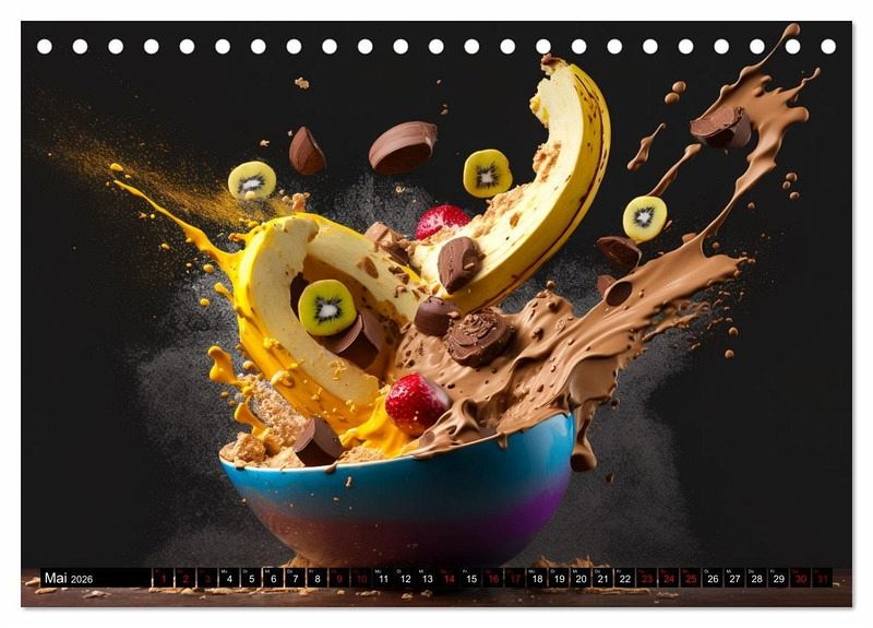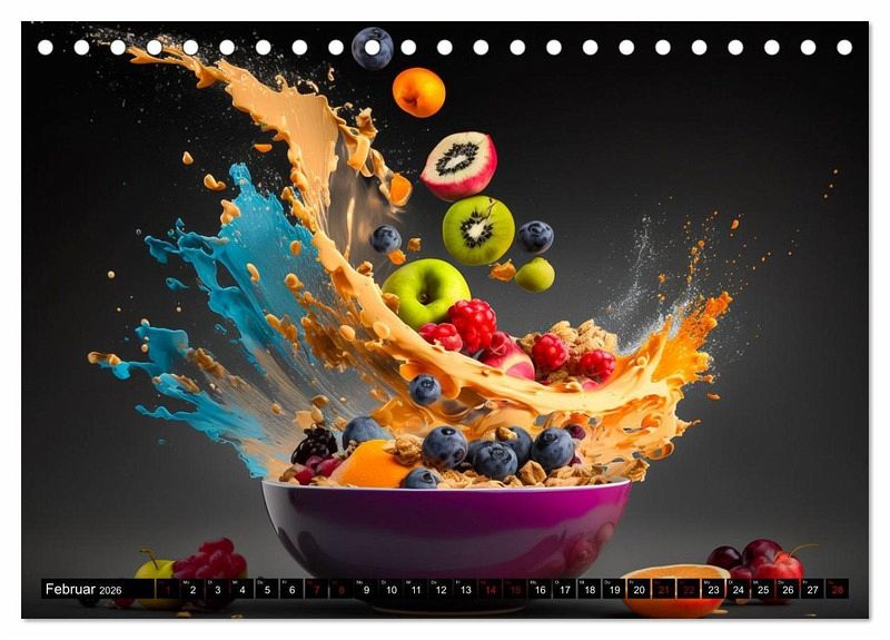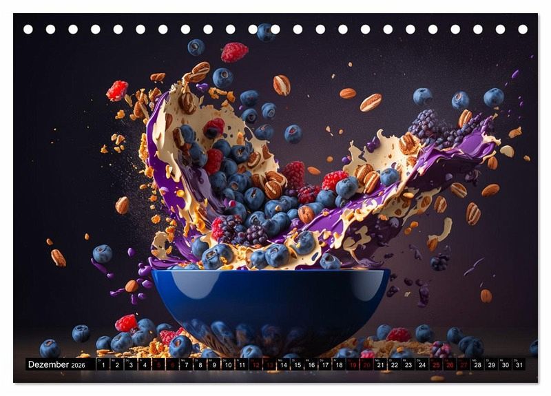 Dieser Kalender ist nichts für schwache Nerven oder knurrende Mägen. Denn vom bloßen Hinschauen bekommt man sofort Appetit und Hunger auf diese wunderbar inszenierten Müslikreationen. Dieser einmalige Kalender eignet sich auch hervorragend als Geschenk für Ihre Bekannten und Verwandten, sie werden sich ganz bestimmt darüber freuen. Erstellt wurden die Bilder im Übrigen mit einer KI und Photoshop.