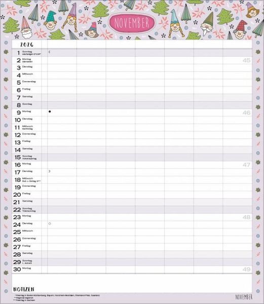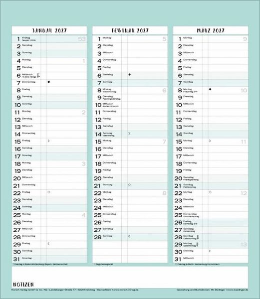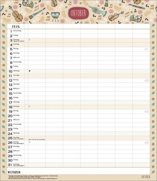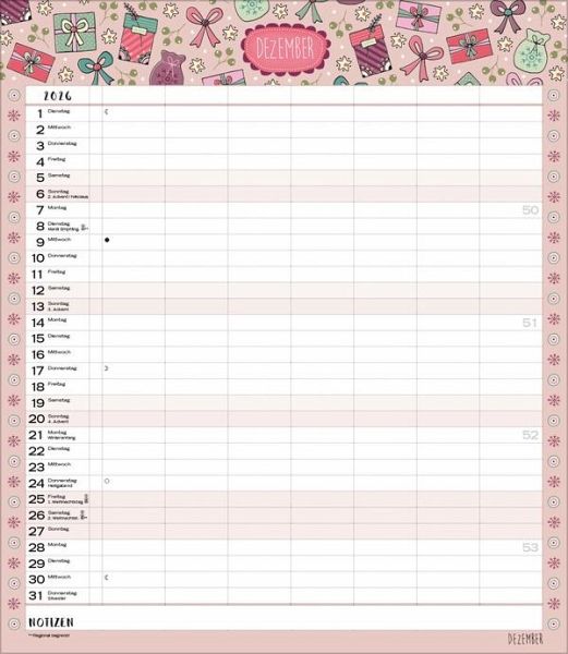 Deutsches Kalendarium mit regionalen Feiertagen für Deutschland, Österreich und Schweiz Farblich hervorgehobene Sonn- und Feiertage, sowie Anzeige der Zeitumstellung Gedruckt auf dickem und umweltfreundlichem FSC Papier