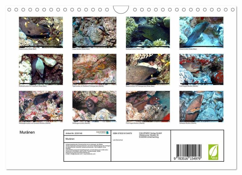 QUALITÄT - Hochwertiger Fotokalender mit 12 wunderschönen Motiven auf lichtbeständigem Bilderdruckpapier, robuste Spiralbindung mit Aufhängebügel.NACHHALTIG - deutliche Abfallreduzierung durch bedarfsgerechte Einzelstückfertigung, umweltfreundliches FSC-zertifiziertes Papier, Produktion in Deutschland, klimabewusste Logistik.PERFEKTES GESCHENK - Kalender für Freunde und Familie, für Kinder und Erwachsene, jung und alt, zu Weihnachten, Geburtstag oder zwischendurch.VIELFALT - Bildkalender in verschiedenen Formaten, z.B. DIN A5, DIN A4, DIN A3 sowie DIN A2. Ob Naturmotiv, Gemälde oder Fotos, ideal für ein persönliches Wohlfühlambiente.Muränen, faszinierende Fische ganz nah von Autor(in): Lars Eberschulz