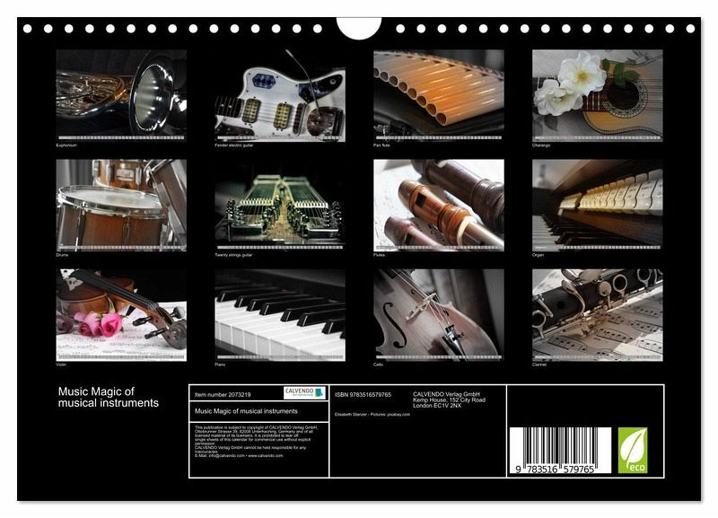 QUALITY - High-quality photo calendar with 12 beautiful images on light-resistant paper, robust spiral binding with hanger.SUSTAINABLE - Significant waste reduction due to print-on-demand production, environmentally friendly FSC-certified paper, produced in the UK, climate-conscious logistical processes.PERFECT GIFT - calendars for friends and family, for children, all ages and all occasions, from Christmas to birthdays and everything in between.LOTS OF CHOICE - Wall calendars in different sizes (DIN A4 and DIN A3), for any topic and personal taste, featuring photography, painting and illustrations.Generate feelings with the sound music, author: Elisabeth Stanzer