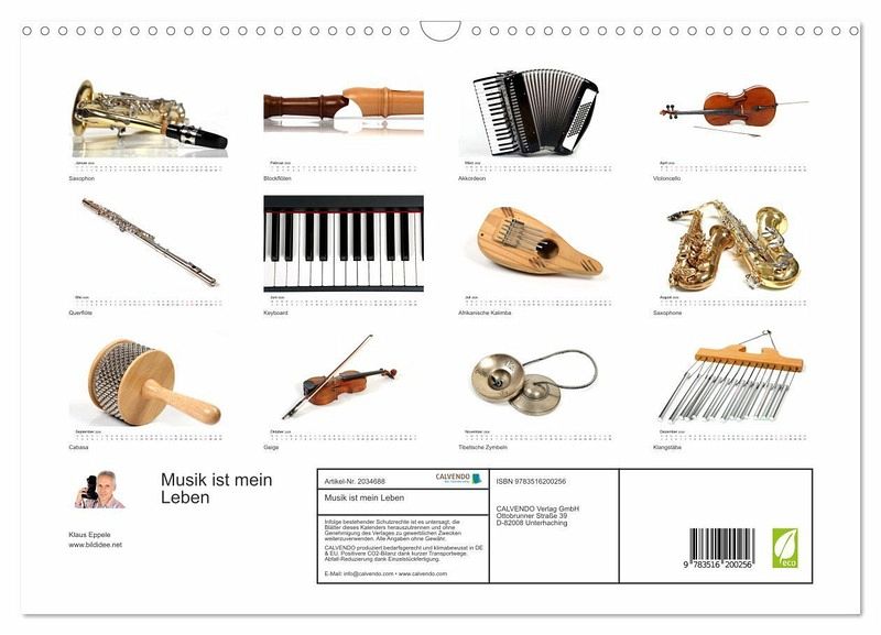 QUALITÄT - Hochwertiger Fotokalender mit 12 wunderschönen Motiven auf lichtbeständigem Bilderdruckpapier, robuste Spiralbindung mit Aufhängebügel.NACHHALTIG - deutliche Abfallreduzierung durch bedarfsgerechte Einzelstückfertigung, umweltfreundliches FSC-zertifiziertes Papier, Produktion in Deutschland, klimabewusste Logistik.PERFEKTES GESCHENK - Kalender für Freunde und Familie, für Kinder und Erwachsene, jung und alt, zu Weihnachten, Geburtstag oder zwischendurch.VIELFALT - Bildkalender in verschiedenen Formaten, z.B. DIN A5, DIN A4, DIN A3 sowie DIN A2. Ob Naturmotiv, Gemälde oder Fotos, ideal für ein persönliches Wohlfühlambiente.Verschiedene Musikinstrumente von Autor(in): Klaus Eppele