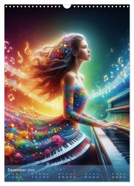 Tauchen Sie ein in die faszinierende Welt der "Musikalischen Magie". Dieser einzigartige KI gestaltete Kalender entführt Sie Monat für Monat in eine zauberhafte Symphonie aus Farben und Klängen. Lassen Sie sich von atemberaubenden Bildern verzaubern, die Frauen in kunstvollen Kleidern aus Noten und musikalischen Elementen zeigen. Jedes Bild erzählt eine eigene Geschichte von Eleganz, Kreativität und der unendlichen Schönheit der Musik.