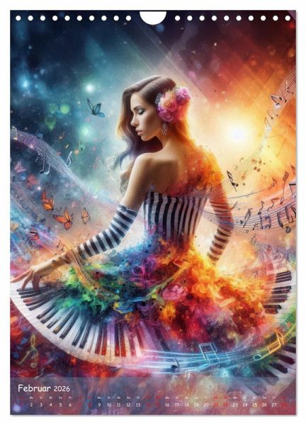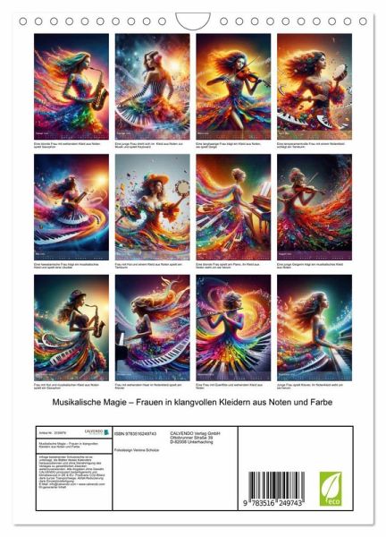 Tauchen Sie ein in die faszinierende Welt der "Musikalischen Magie". Dieser einzigartige KI gestaltete Kalender entführt Sie Monat für Monat in eine zauberhafte Symphonie aus Farben und Klängen. Lassen Sie sich von atemberaubenden Bildern verzaubern, die Frauen in kunstvollen Kleidern aus Noten und musikalischen Elementen zeigen. Jedes Bild erzählt eine eigene Geschichte von Eleganz, Kreativität und der unendlichen Schönheit der Musik.