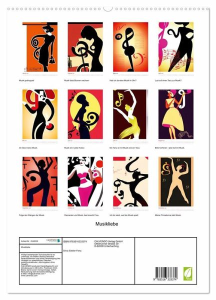 PREMIUM-LINIE - Brillanter Fotokalender mit 12 wunderschönen Motiven, Kunstdruck in Hochglanz in Museumsqualität.QUALITÄT - edle Materialien, stabile Rückwand mit 2 innovativen Einstecktaschen für eine optimale Präsentation an der Wand.NACHHALTIG - deutliche Abfallreduzierung durch bedarfsgerechte Einzelstückfertigung, umweltfreundliches FSC-zertifiziertes Papier, Produktion in Deutschland, klimabewusste Logistik.PERFEKTES GESCHENK - Kalender für Freunde und Familie, für Kinder und Erwachsene, jung und alt, zu Weihnachten, Geburtstag oder zwischendurch.Musik begleitet uns im Leben von Autor(in): Silvia Siebler-Ferry